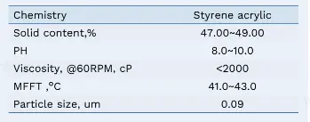 ENCOR® 2436 provides a balanced combination of solid content, viscosity, particle size, and MFFT—making it a versatile choice for formulators seeking both performance and ease of processing. Its excellent film-forming behavior supports faster drying and better blocking resistance.